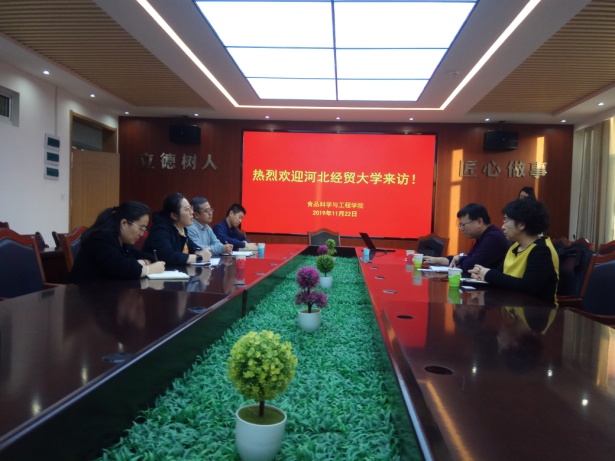 2019年11月22日,bevitor伟德国际1946鞠国泉、刘增然和巨浩羽老师赴青岛农业大学食品科学与工程公司调研学习。公司鞠国泉老师介绍了公司的基本情况,青岛农业大学食品科学与工程公司副经理孙庆杰讲解了本公司的发展历史,随后针对一流专业建设分享了宝贵的实践经验。